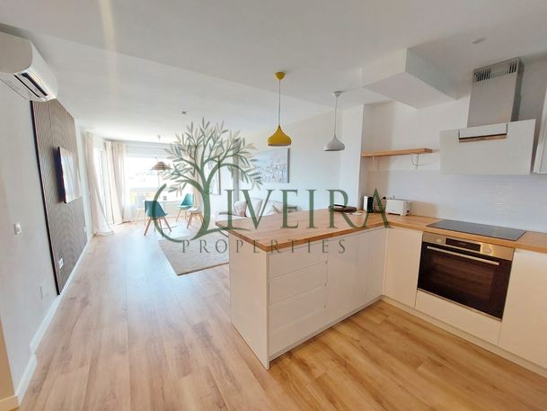 Este bonito piso moderno y soleado en un complejo residencial tranquilo con piscina comunitaria ha sido completamente reformado con los mejores materiales y se ofrece con muebles incluidos. El piso de 75 m² dispone de 2 dormitorios, uno de ellos con vistas al mar y acceso a la terraza. También hay dos cuartos de baño con ducha de estilo moderno y de muy buen gusto, así como un salón-comedor en el que se integra la bonita cocina americana y moderna. Las maravillosas vistas al mar y a la montaña y los grandes ventanales del balcón cubierto (aprox. 5 m²) permiten la entrada de mucha luz natural en las zonas de estar.